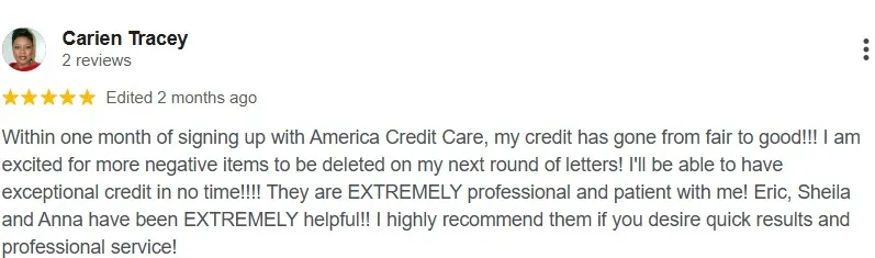Through dedication and persistence, I not only transformed my own financial standing but also found my passion—helping others do the same. Now, at AMERICA CREDIT CARE, we go beyond just optimizing credit—we educate and empower people to ensure they never find themselves trapped by financial limitations again.